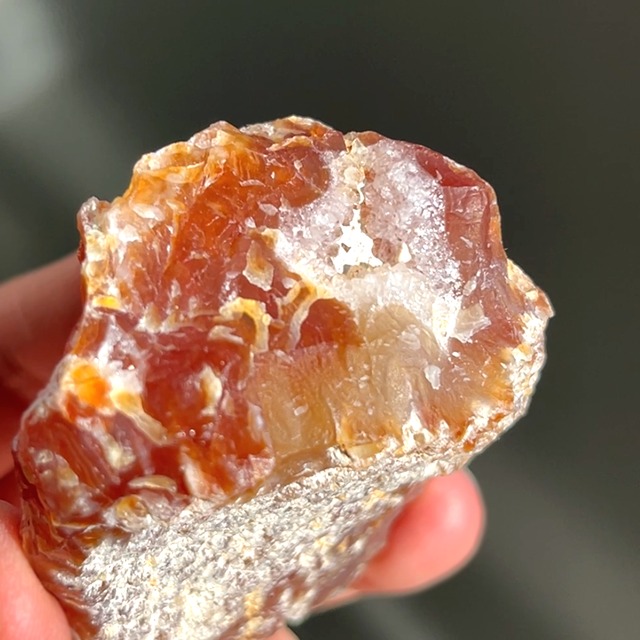 6.0×4.9×3.0cm 125g 北海道 今金町 花石(珍古辺)産 国産カーネリアンの原石 切りっぱなしで凹凸はありますが、滑らかな質感です。 野性味あふれる濃いオレンジ色ですが、 光を通すと炎のような鮮やかな色になります(1枚目) 石英が結晶している部分もありキラキラとしています。 お腹の奥から湧き上がる、創造のエネルギー。 あらゆる表現とその喜びのサポートに。 【動画でチェック】 https://www.instagram.com/reel/DRUBmQrk5Rr/?igsh=MTJrNGM3ZjI2dG0x ※スマホから動画が再生しない場合は、 インスタを一回閉じた(終了)後にリンクをクリックしてください 【ご確認ください】 表面の細かいキズや凹みは天然石の特徴です。 商品の特性上、返品はお受けできません。 お使いの機器によっては画像の色と実物が 多少異なって見える場合もございます。 以上をご了承の上、お買い求めください。